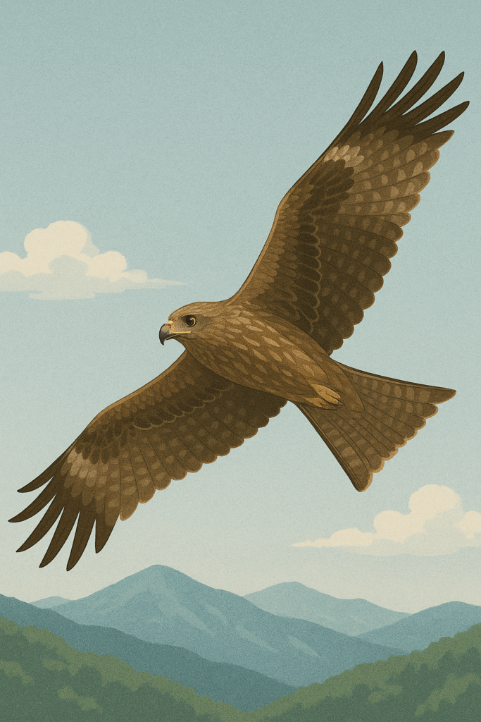山を滑空するトンビの姿は、ただ美しいだけではなく、