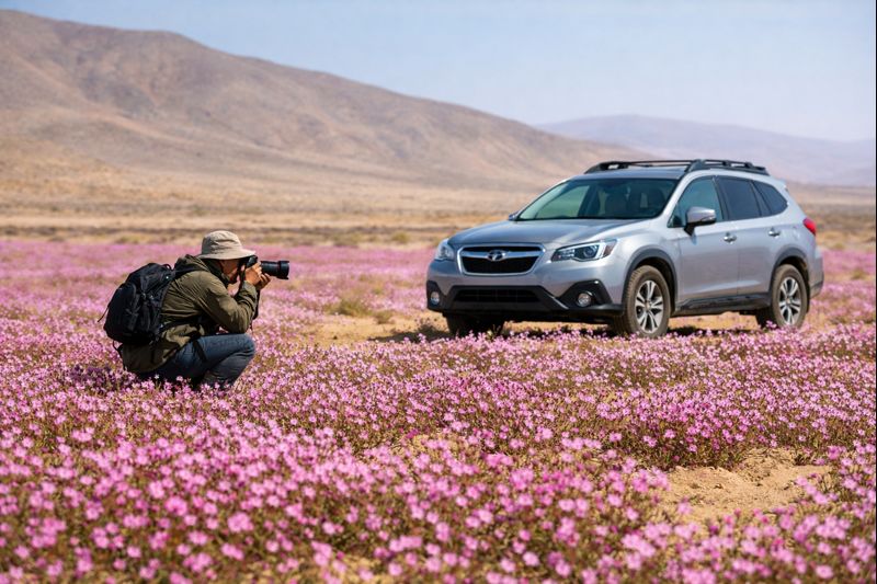 チリ・アタカマ砂漠に咲く花園の映像を観ました。